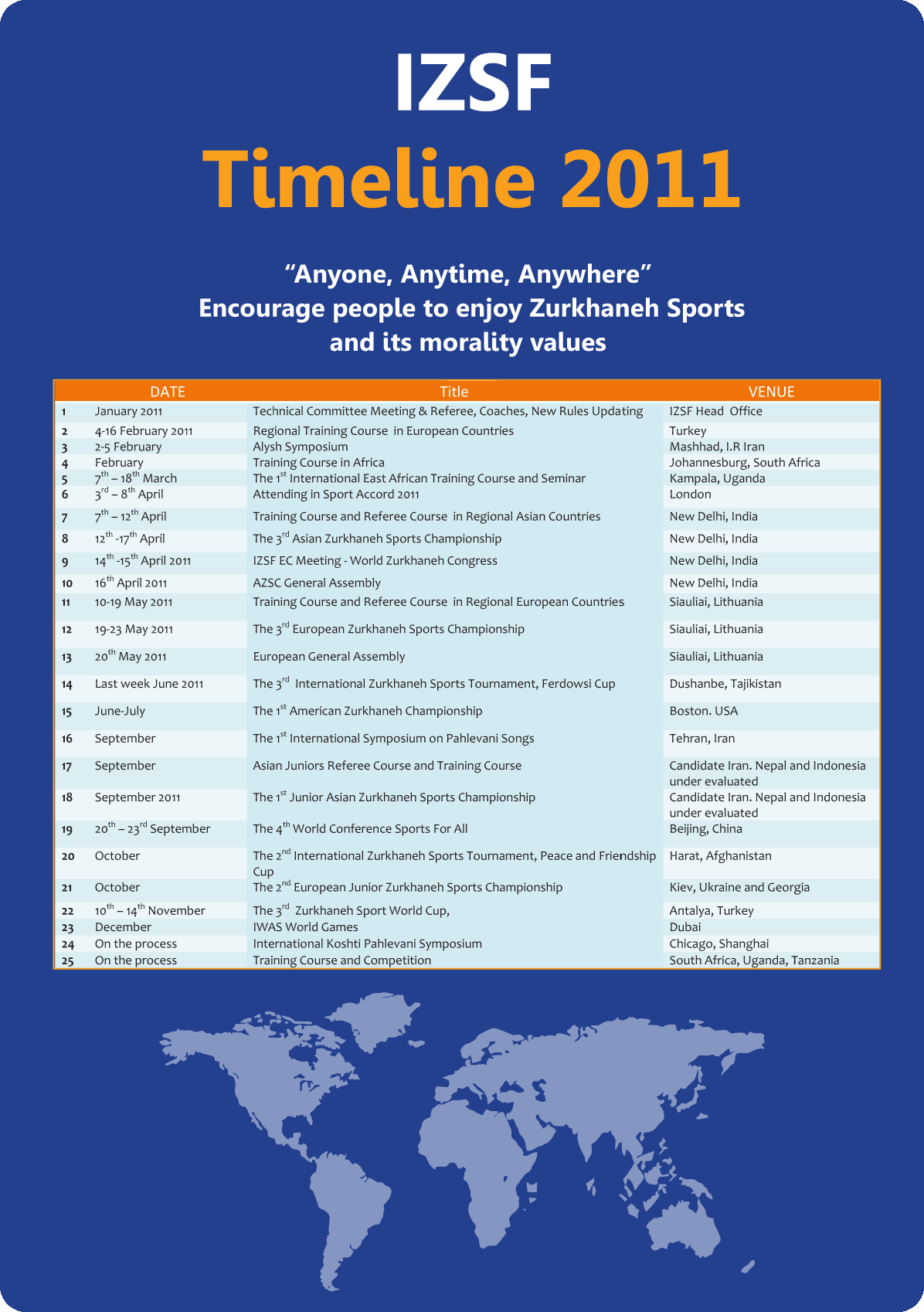 تقویم فعالیت های IZSF در سال 2011 میلادیف 1389-1390 شمسی